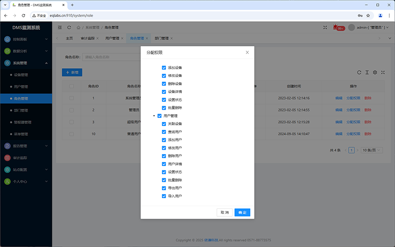 完整的用户、角色、权限管理,对用户、角色无数量限制,可根据业务需求设多个角色,每个角色的权限可自由分配